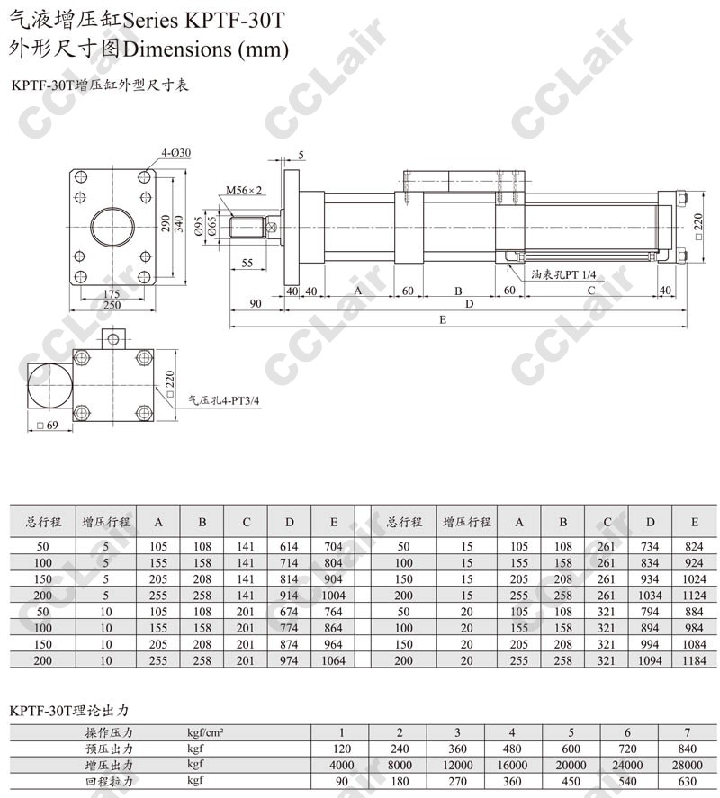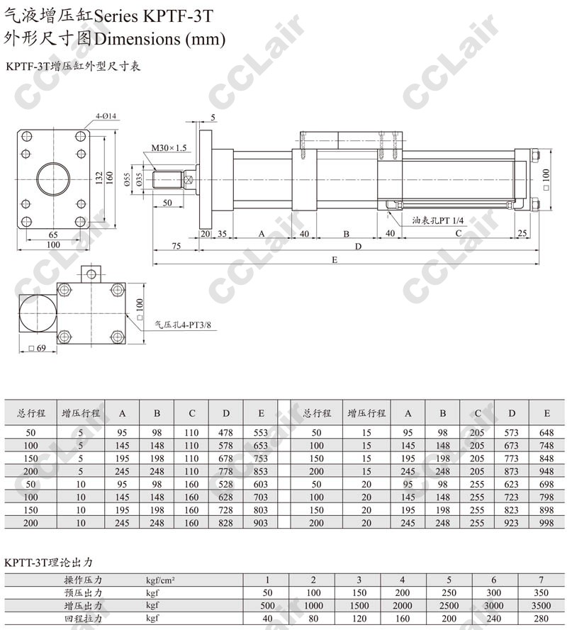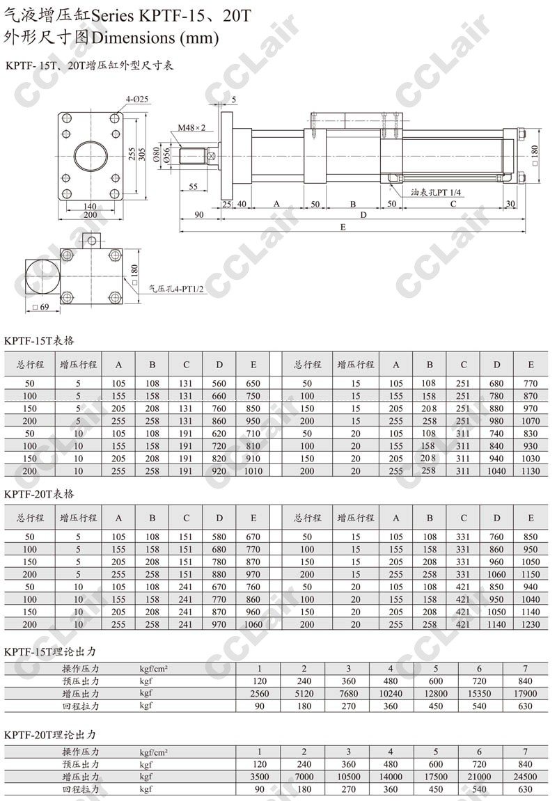 KPT63,KPT80,KPT100,KPT125,KPT160,KPTF63,KPTF80,KPTF100,KPTF125,KPTF160,ARK氣液增壓缸