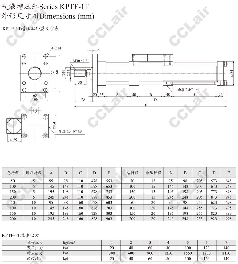 詳細信息 KPT63,KPT80,KPT100,KPT125,KPT160,KPTF63,KPTF80,KPTF100,KPTF125,KPTF160,ARK氣液增壓缸