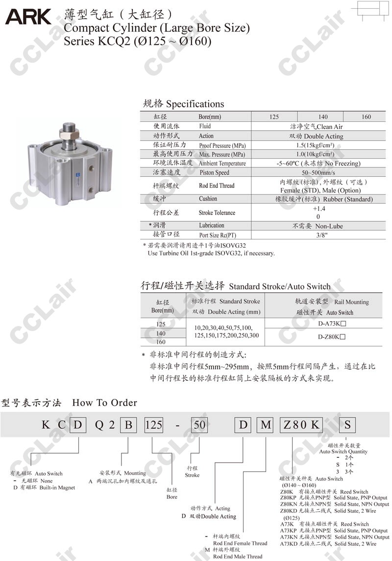 詳細(xì)信息 KCQ2A125,KCQ2A140,KCQ2A160,KCQ2A125-100,KCQ2A140-175,KCQ2A160-125,KCQ2A140-40,ARK薄型氣缸