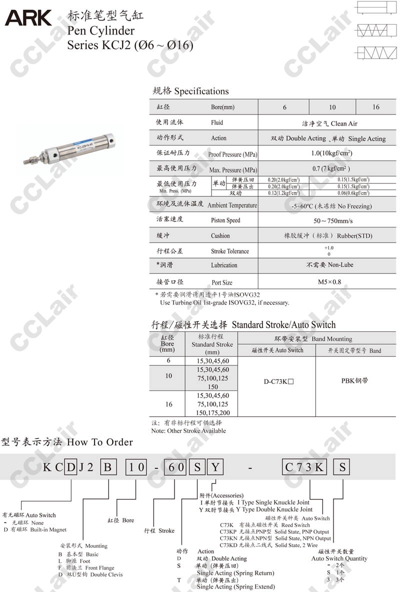 KCJ2B6,KCJ2B10,KCJ2B16,KCJ2B10-150,KCJ2B16-15,KCJ2B6-60,KCJ2B10-45,KCJ2B16-150,ARK標(biāo)準(zhǔn)筆型氣缸