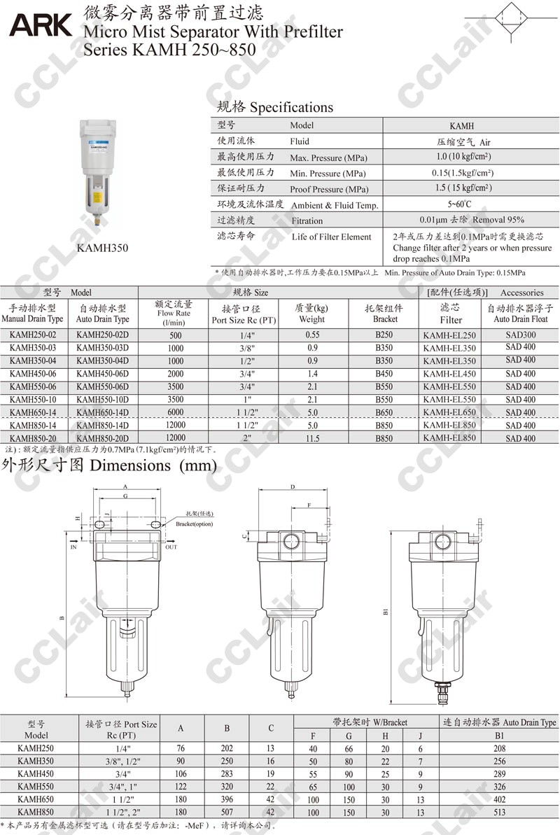 詳細(xì)信息 KAMH250,KAMH350,KAMH450,KAMH550,KAMH650,KAMH850,KAMH350-03D,KAMH550-10,ARK油霧分離器