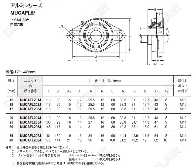 MUCAFL201J,MUCAFL202C-J,MUCAFL203E-J,MUCAFL208E-J,MUCAFL,軸承