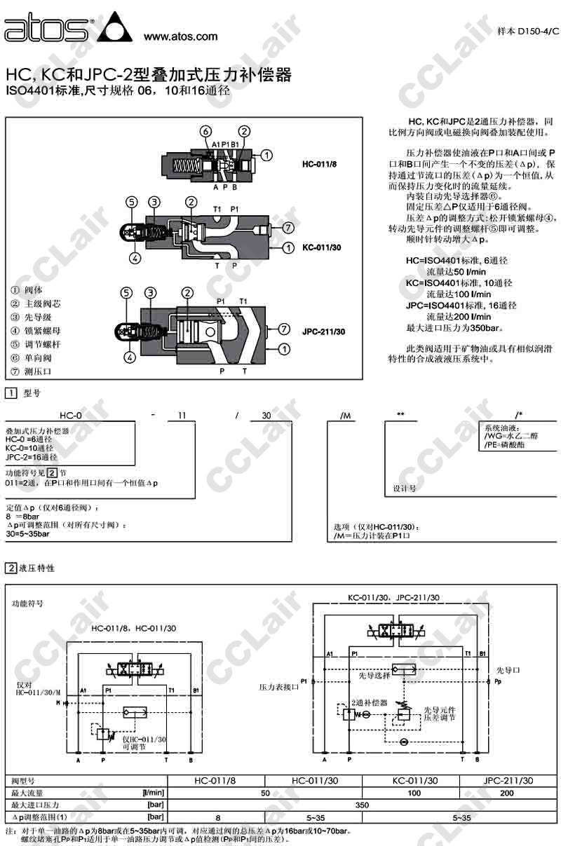 詳細(xì)信息 HC-011/8,HC-011/30/M,KC-011/30,JPC-211/30,阿托斯ATOS疊加式壓力補(bǔ)償器