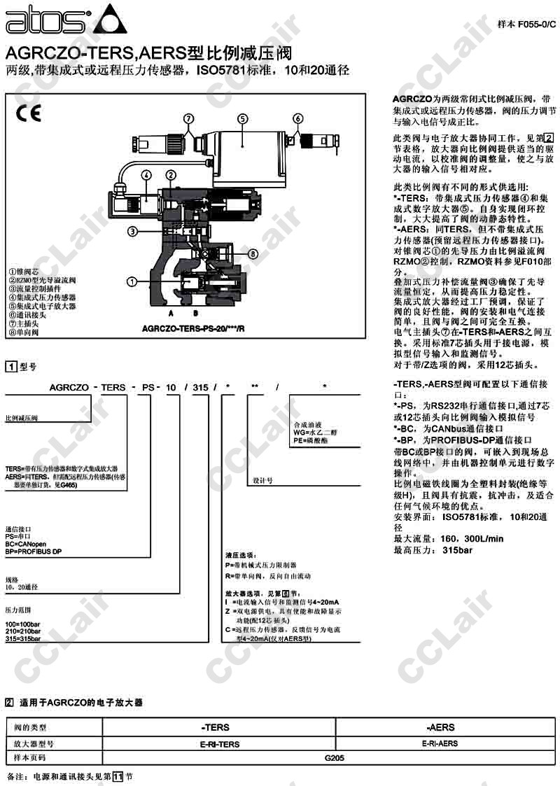 AGRCZO-AERS,AGRCZO-TERS,AGRCZO-TERS-BC-20/315,AGRCZO-AERS-BP-20/315,阿托斯ATOS比例減壓閥