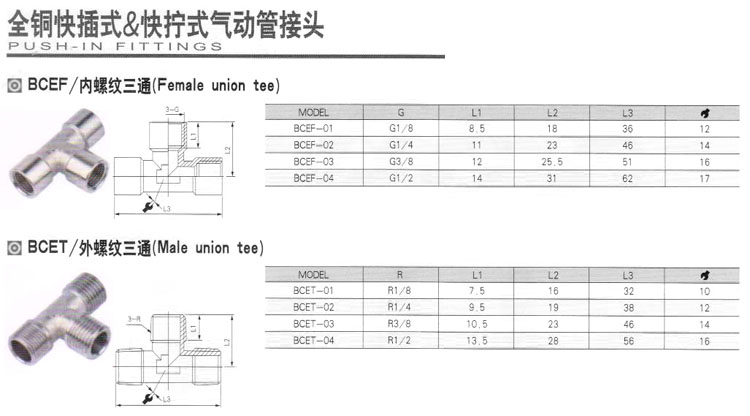 詳細(xì)信息 BCEF-01,BCEF-02,BCEF-03,BCEF-04,BCET-01,BCET-02,BCET-03,BCET-04,氣動管接頭