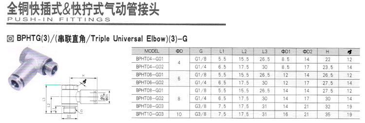 BPHT04-G01,BPHT04-G02,BPHT06-G01,BPHT06-G02,BPHT08-G01,BPHT08-G02,BPHT08-G03,BPHT10-G03,氣動(dòng)管接頭