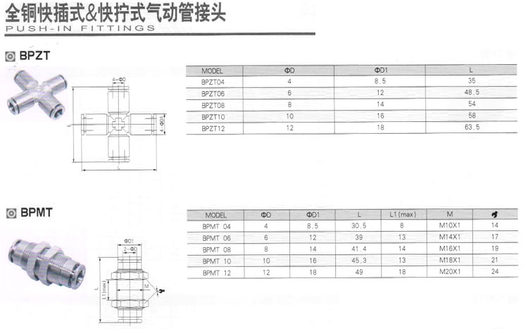 BPZT04,BPZT06,BPZT08,BPZT10,BPZT12,BPMT04,BPMT06,BPMT08,BPMT10,BPMT12,氣動管接頭