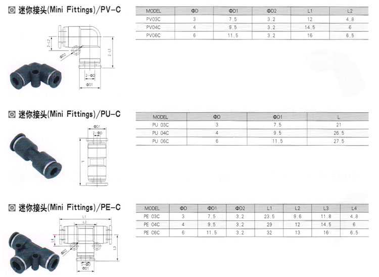 PV03C,PV04C,PV06C,PU03C,PU04C,PU06C,PE03C,PE04C,PE06C,迷你接頭