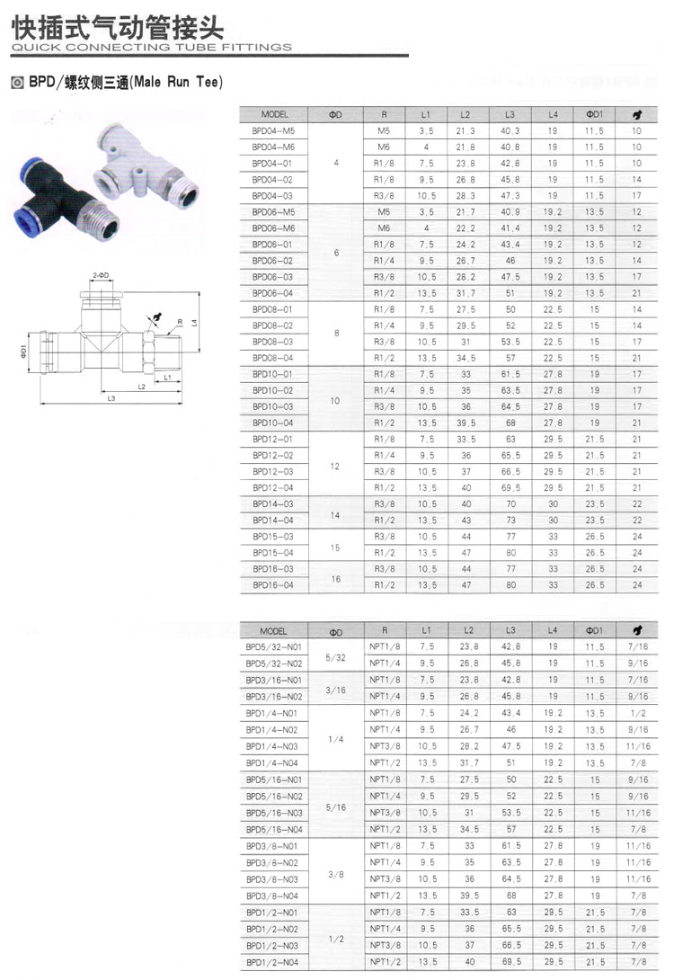BPD04,BPD06,BPD08,BPD10,BPD12,BPD14,BPD5/32,BPD3/16,BPD1/4,BPD3/8,BPD1/2,BPD04-M5,快插式氣動(dòng)管接頭