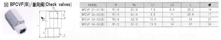 詳細(xì)信息 BPCVF01-01(B),BPCVF02-02(B),BPCVF03-03(B),BPCVF04-04(B),單向閥