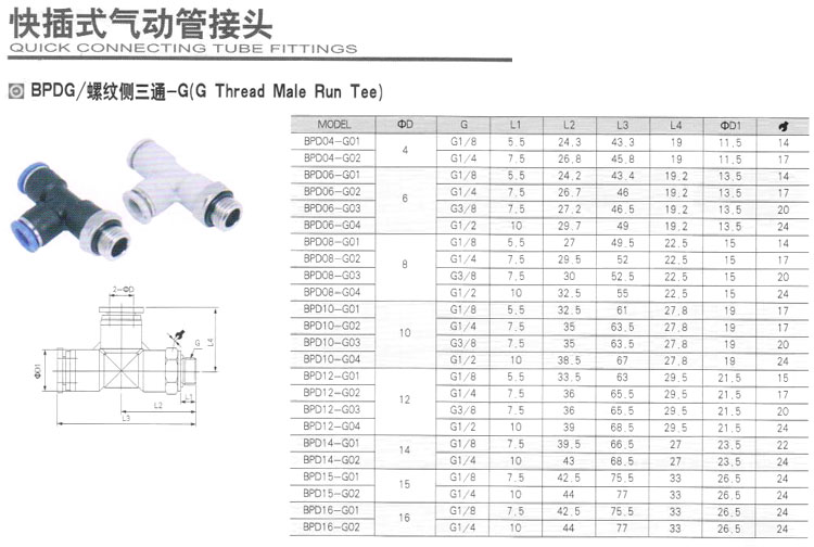 BPD04-G01,BPD06-G01,BPD08-G01,BPD10-G01,BPD12-G01,BPD14-G01,BPD15-G01,BPD16-G02,快插式氣動管接頭