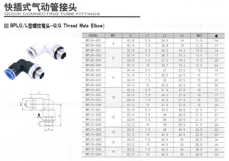 BPL04-G01,BPL06-G01,BPL08-G01,BPL10-G01,BPL12-G01,BPL14-G03,BPL15-G03,BPL16-G03,快插式氣動(dòng)管接頭