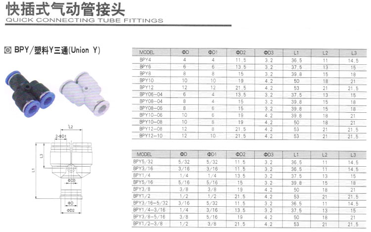 BPY4,BPY6,BPY8,BPY10,BPY12,BPY5/32,BPY3/16,BPY1/4,BPY5/16,BPY3/8,BPY1/2,快插式氣動管接頭