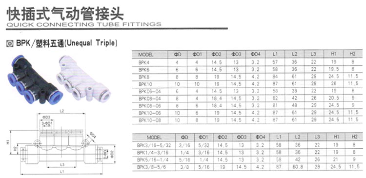BPK4,BPK6,BPK8,BPK10,BPK3/16-5/32,BPK1/4-3/16,BPK5/16-1/4,BPK3/8-5/6,快插式氣動管接頭