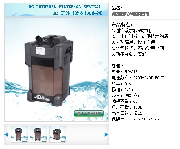 詳細(xì)信息 MC-816,缸外過(guò)濾器