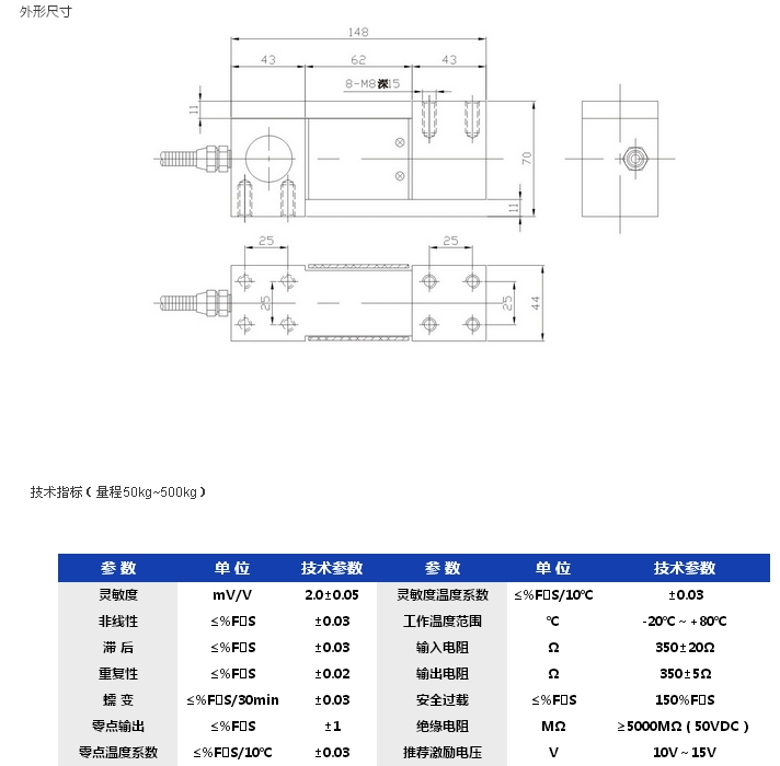 該傳感器彈性體采用彎曲懸臂梁結(jié)構(gòu),一端固定,一端受力,結(jié)構(gòu)強(qiáng)度好,可用于各種拉伸力和壓縮力的承載和測量。具有:精度高、性能穩(wěn)定可靠、安裝使用方便等特點(diǎn)。適用于電子秤、衡器等各種測力、稱重的工業(yè)自動(dòng)化測量控制系統(tǒng)。