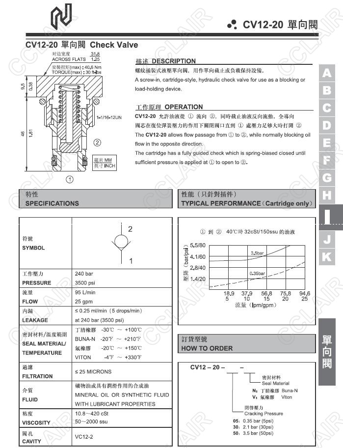 Northman臺(tái)灣北部精機(jī),單向閥CV12-20-05-N,CV12-20-05-V,CV12-20-30-N,CV12-20-30-V,CV12-20-50-N,CV12-20-50-V