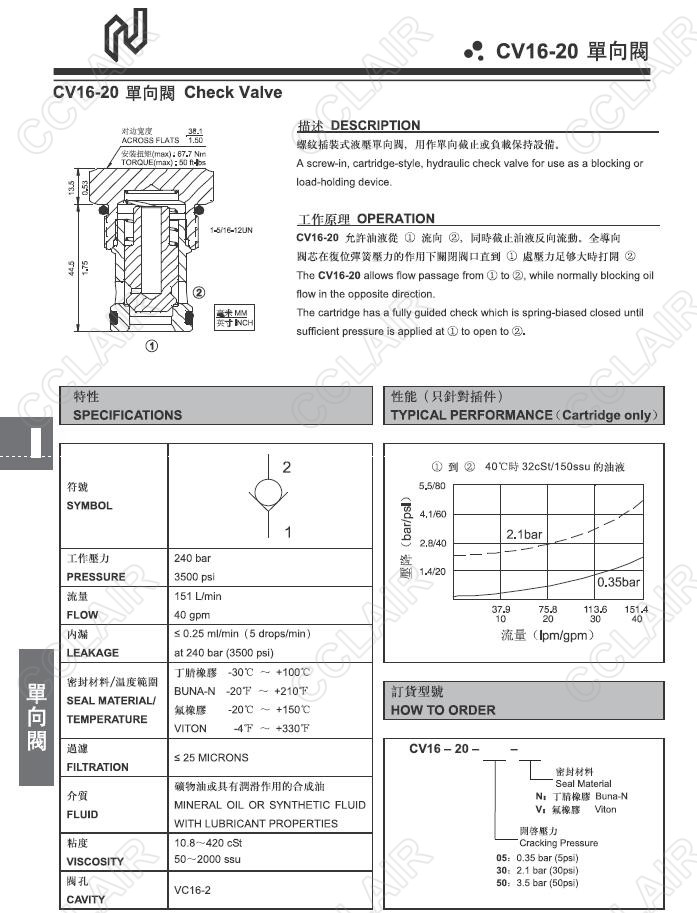 CV16-20-05-N,CV16-20-05-V,CV16-20-30-N,CV16-20-30-V,CV16-20-50-N,CV16-20-50-V,Northman臺(tái)灣北部精機(jī),單向閥