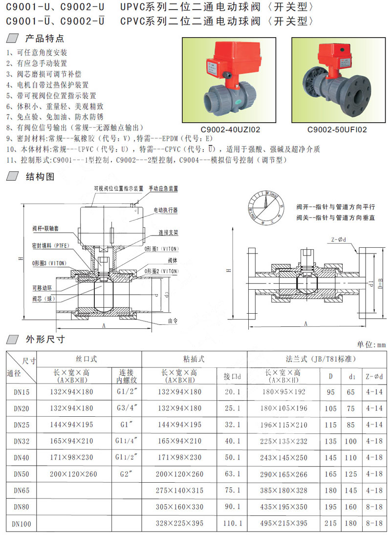 C9001-15,C9001-20,C9001-25,C9001-32,C9002-40,C9002-50,電動球閥