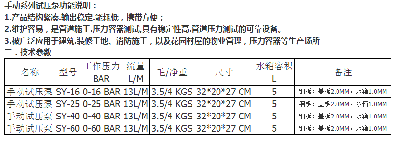 SY-16,SY-25,SY-40,SY-60,手動(dòng)測(cè)壓泵25kg至60kg全銅泵體銅活塞持久更耐用