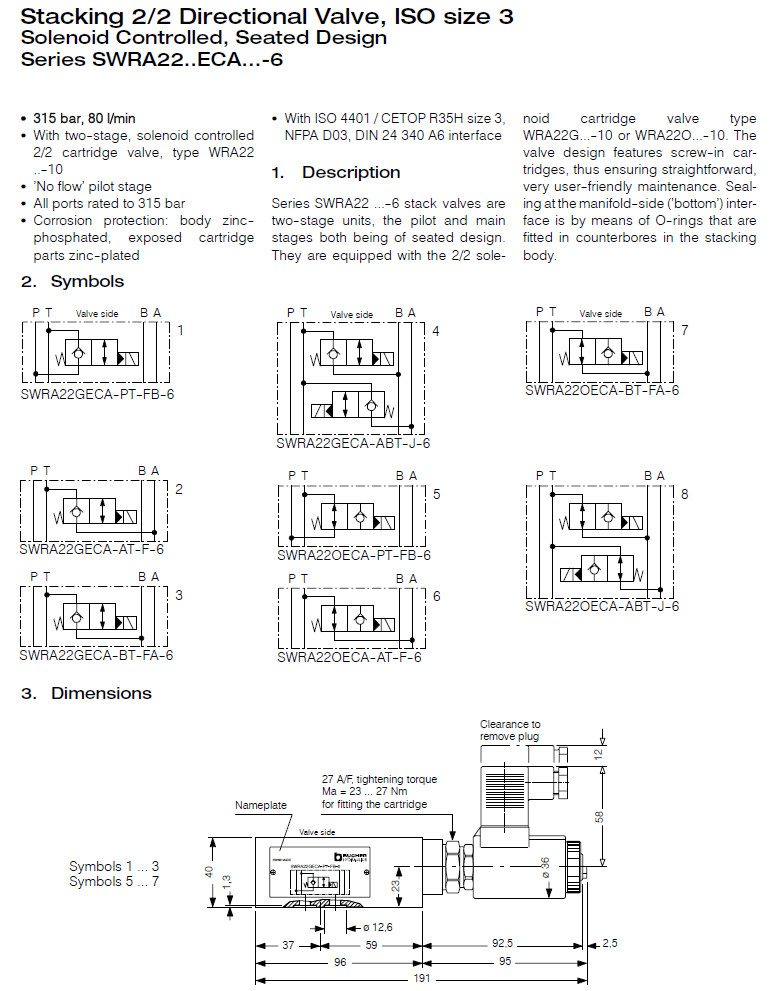SWRA22GECA-AT,SWRA22GECA-PT,SWRA22GECA-BT,SWRA22GECA-T,SWRA22GECA-ABT,Bucher疊加閥