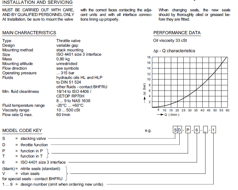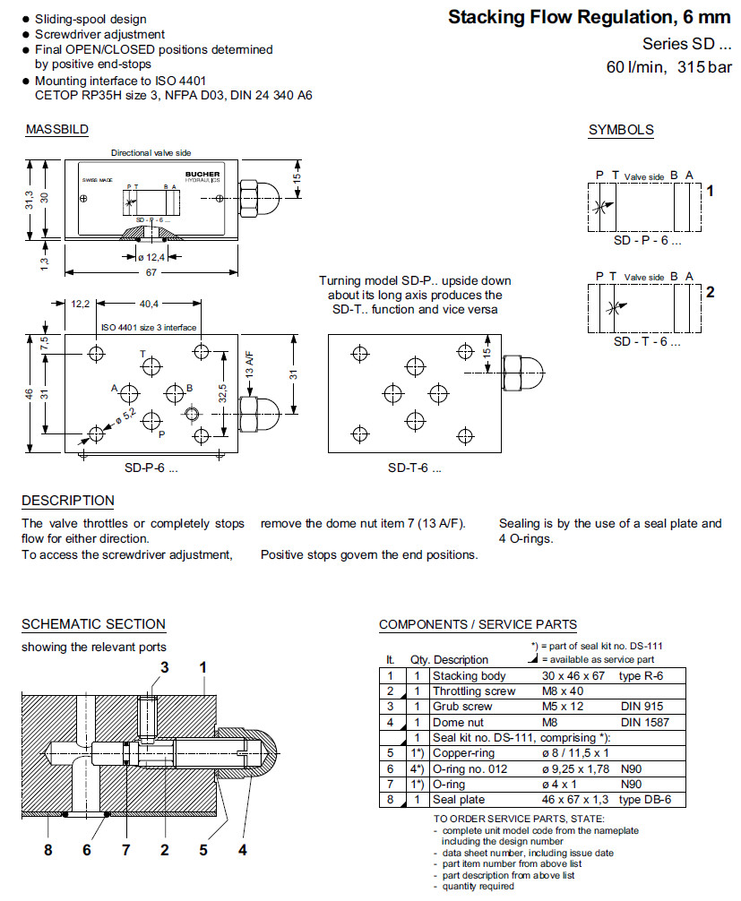 詳細(xì)信息 SD-P-6-1,SD-T-6-1,SD-P-6-V-1,SD-T-6-V-1,Bucher疊加閥