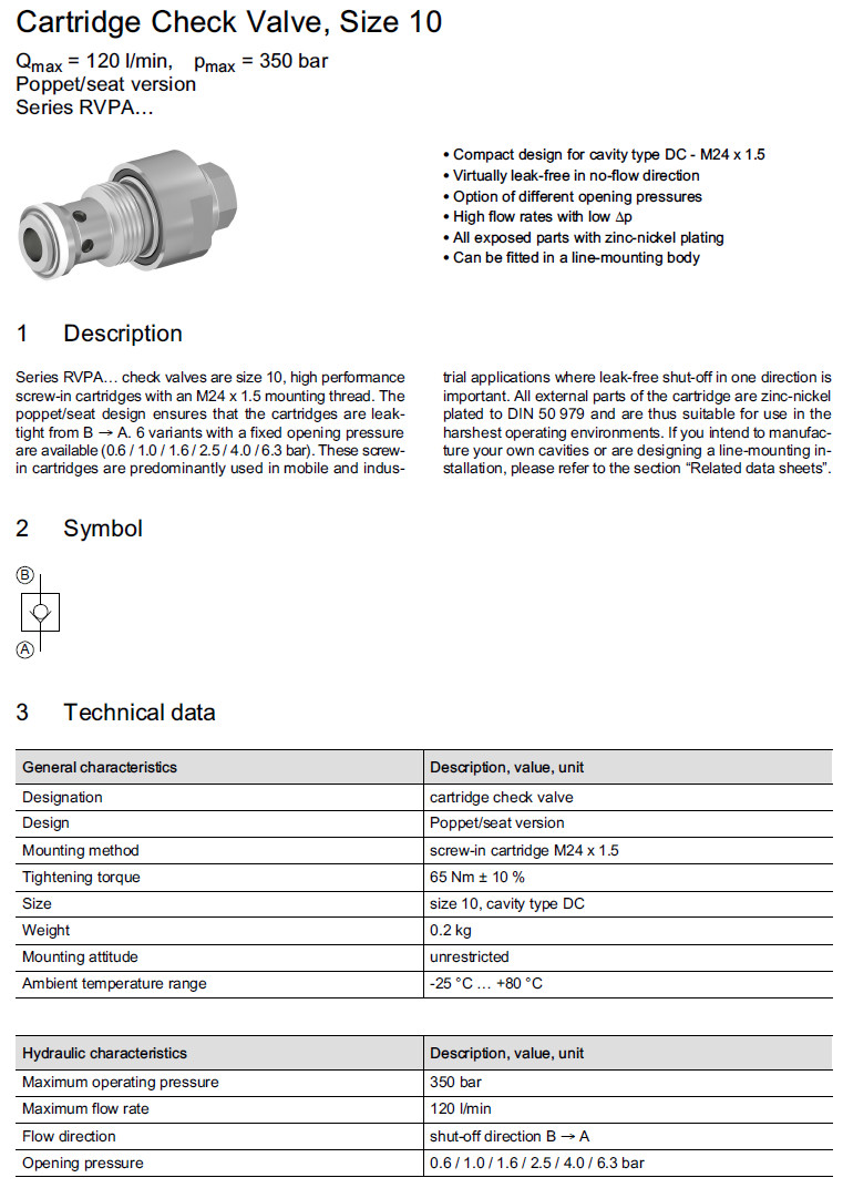 您當(dāng)前的位置:首頁(yè) » 產(chǎn)品&解決方案 » RVPA-10-06,RVPA-10-10,RVPA-10-16,RVPA-10-25,RVPA-10-40,RVPA-10-63,Bucher止回閥