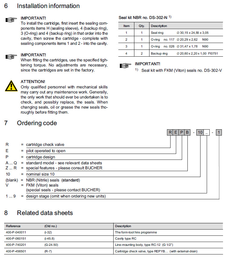 詳細信息 REPB-10-1,REPB-10-V-1,Bucher插裝閥