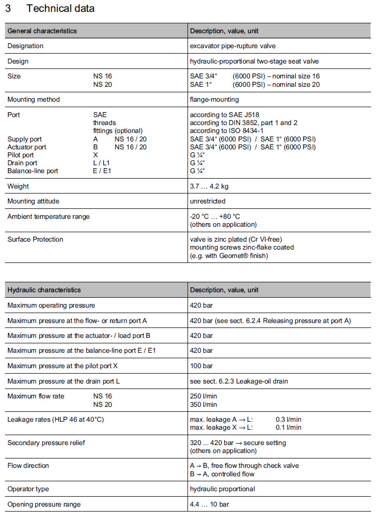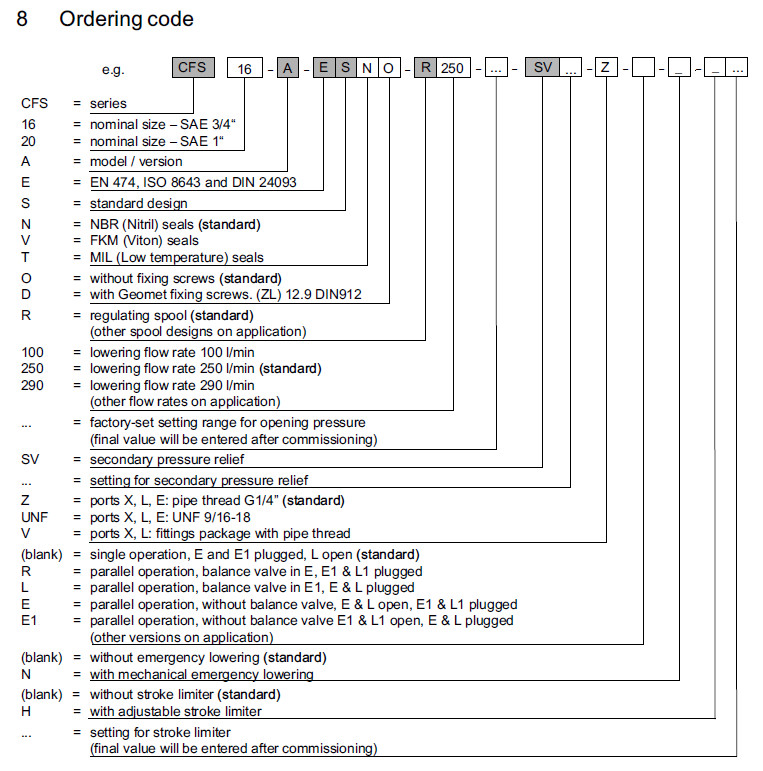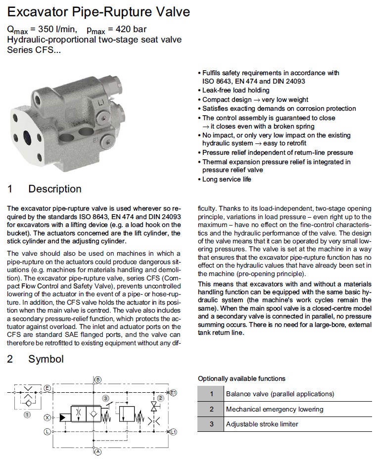 CFS16-A-ESNO,CFS20-A-ESNO,CFS16-A-ESVO,CFS20-A-ESTO,CFS16-A-ESVD,Bucher挖掘機(jī)管道破裂閥