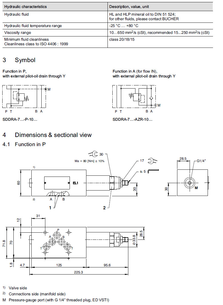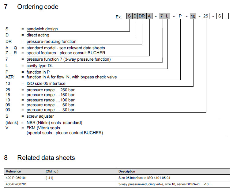 詳細信息 SDDRA-7L-P-10-25,SDDRA-7L-P-10-16,SDDRA-7L-P-10-06,SDDRA-7L-P-10-10,Bucher減壓閥