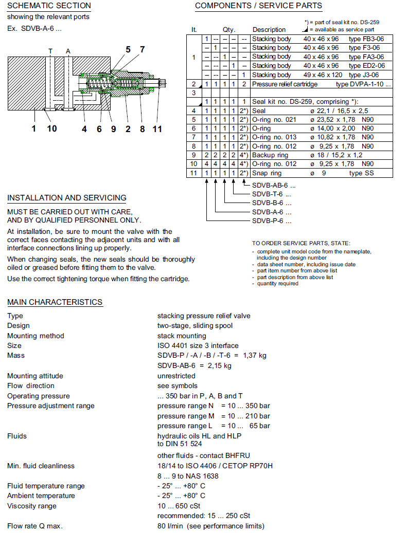 SDVB-A-6-SN,SDVB-B-6-SN,SDVB-T-6-HM,SDVB-P-6-ZN,SDVB-AS-6-SN,Bucher卸壓閥