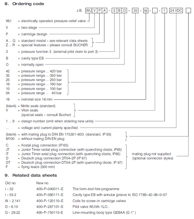 詳細(xì)信息 WUVPA-3BO-04-16-1,WUVPA-3BO-10-16-1,WUVPA-3BO-25-16-1,Bucher溢流閥