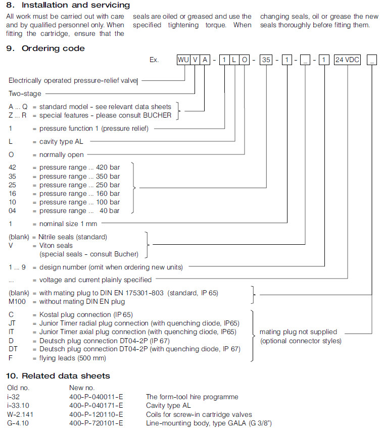 詳細信息 WUVA-1LO-04-1-1,WUVA-1LO-10-1-1,WUVA-1LO-25-1-1,WUVA-1LO-35-1-1,Bucher溢流閥