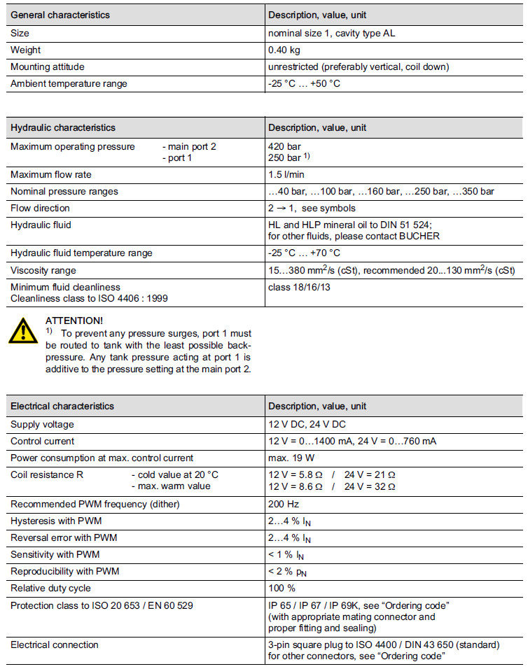 詳細(xì)信息 DVSA-1LG-100-1-1,DVSA-1LG-160-1-1,DVSA-1LG-250-1-1,DVSA-1LG-350-1-1,Bucher泄壓閥