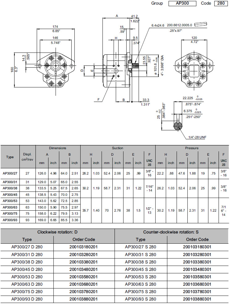 AP300/45-S-280,AP300/53-S-280,AP300/63-S-280,AP300/75-S-280,AP300/93-S-280,