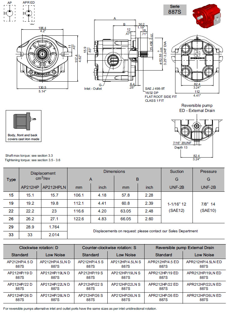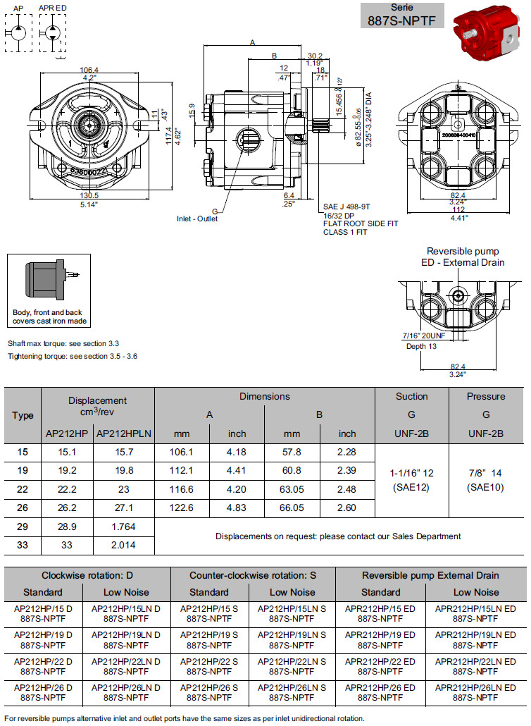詳細信息 AP212HP/15LN-D-887S-NPTF,AP212HP/19LN-D-887S-NPTF,AP212HP/22LN-D-887S-NPTF,AP212HP/26LN -D-887S-NPTF齒輪泵
