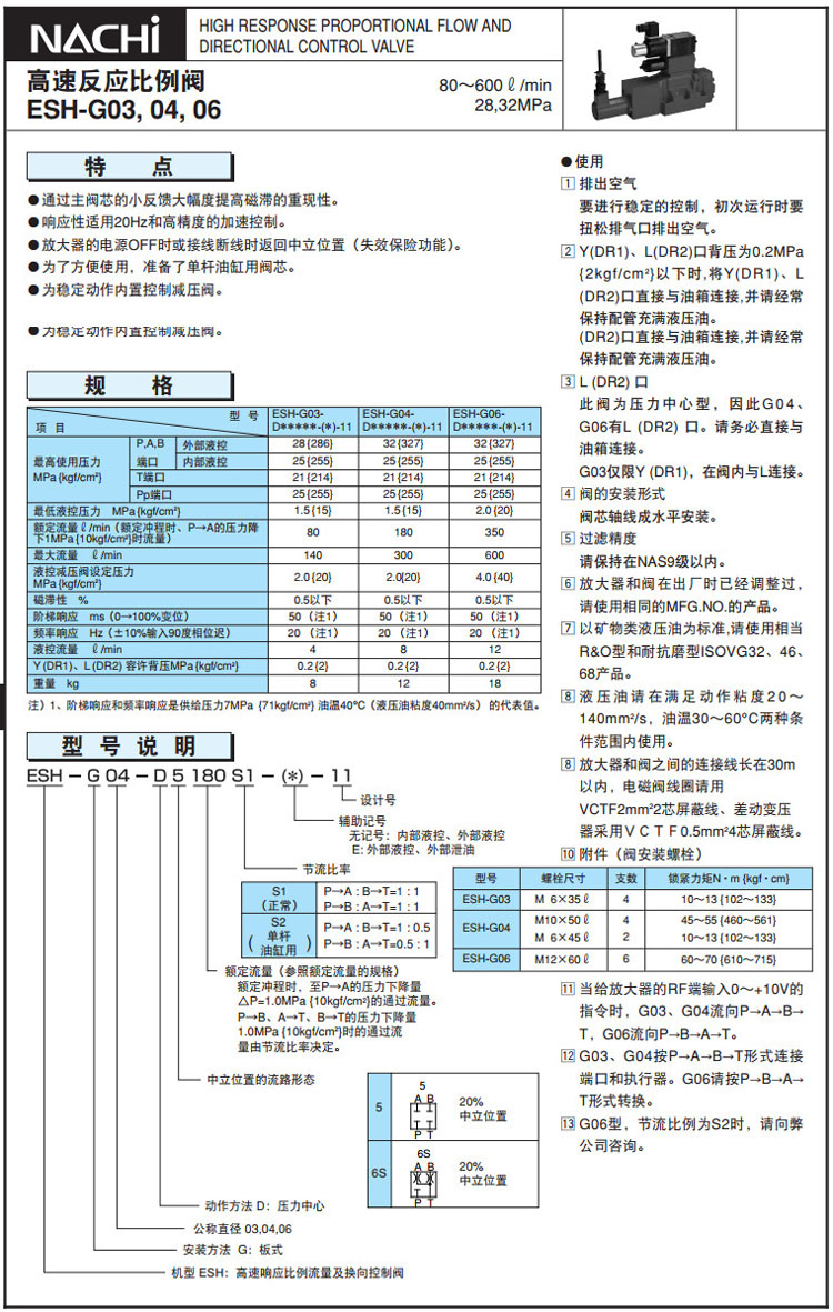 詳細信息 ESH-G03,ESH-G04,ESH-G06,ESH-G03-D580S1-E-11,ESH-G04-D5180S1-11,ESH-G06-D5350S1-11,NACHI高速反應比例閥