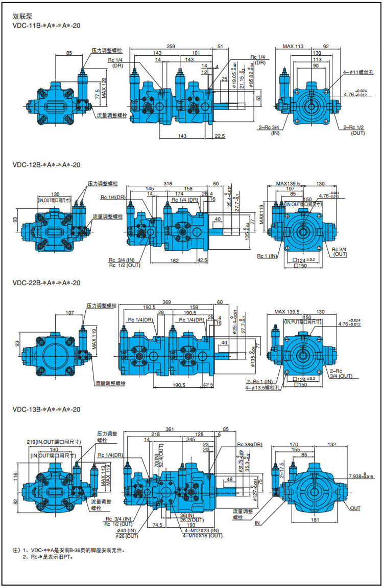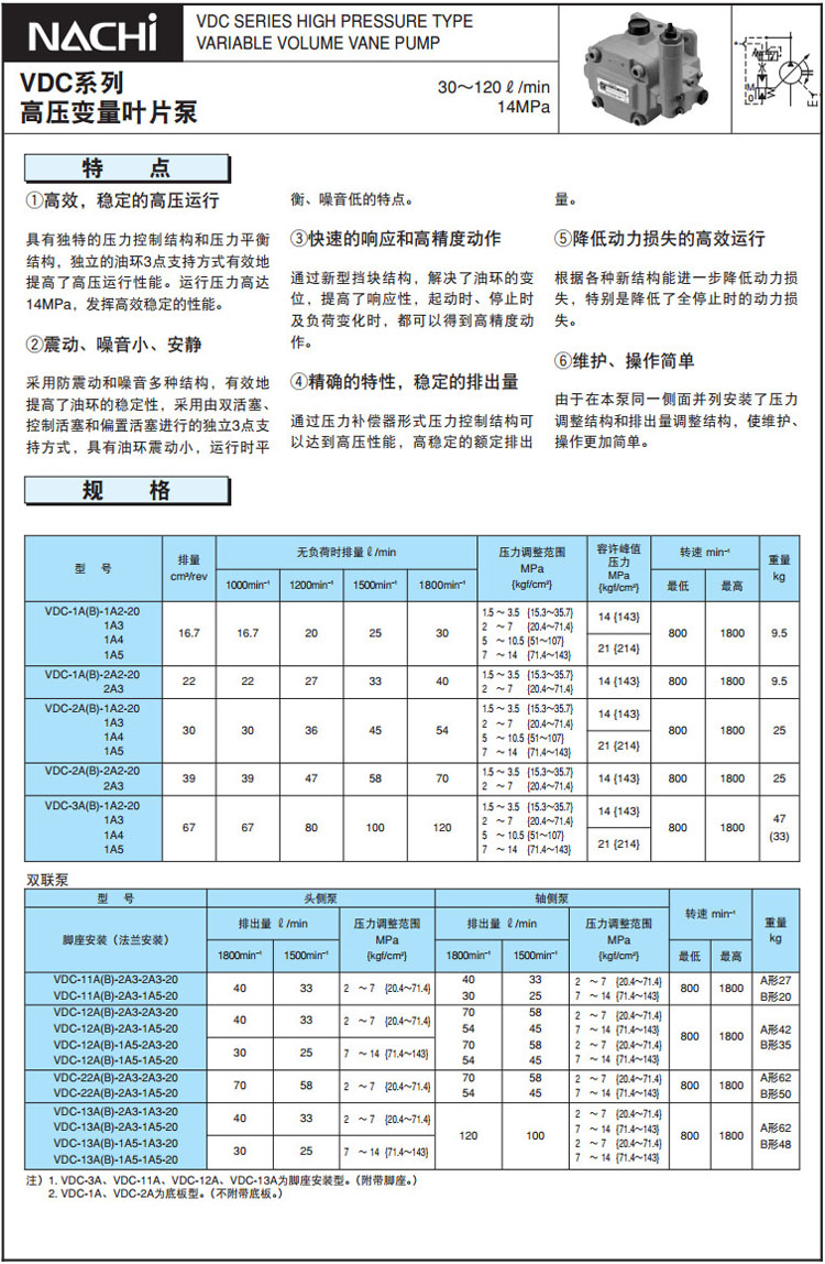 VDC-1A,VDC-1B,VDC-11A,VDC-11B,VDC-12A,VDC-12B,VDC-22A,VDC-22B,VDC-13A,VDC-13B,NACHI高壓變量葉片泵