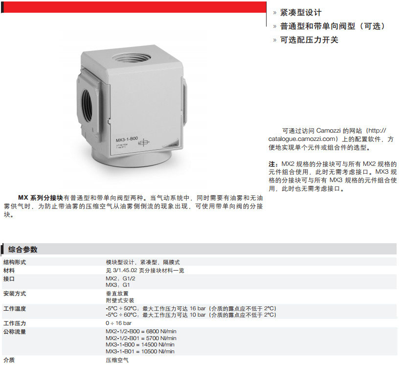 您當(dāng)前的位置:首頁 » 供應(yīng)產(chǎn)品 » MX2-1/2-B00,MX2-1/2-B01,MX2-1-B00,MX3-1-B00,camozzi分氣塊