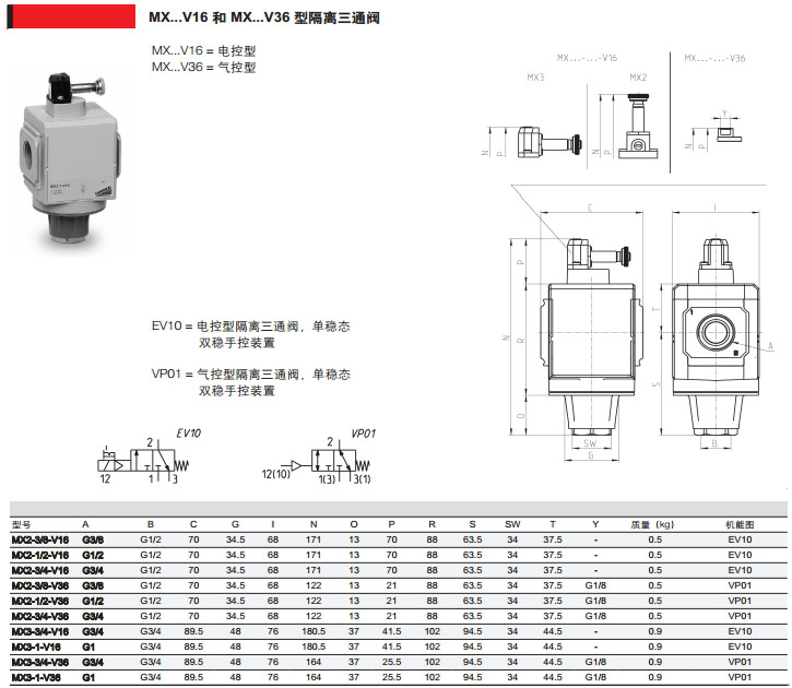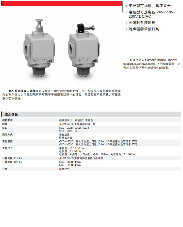 MX2-3/8-V01,MX2-1/2-V16,MX3-3/8-V17,MX3-1/2-V36,MX2-1-V36,camozzi隔離三通閥