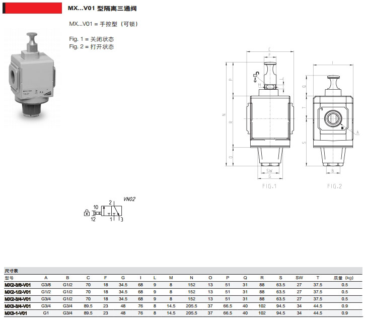 瀏覽次數(shù):893MX2-3/8-V01,MX2-1/2-V16,MX3-3/8-V17,MX3-1/2-V36,camozzi隔離三通閥 |