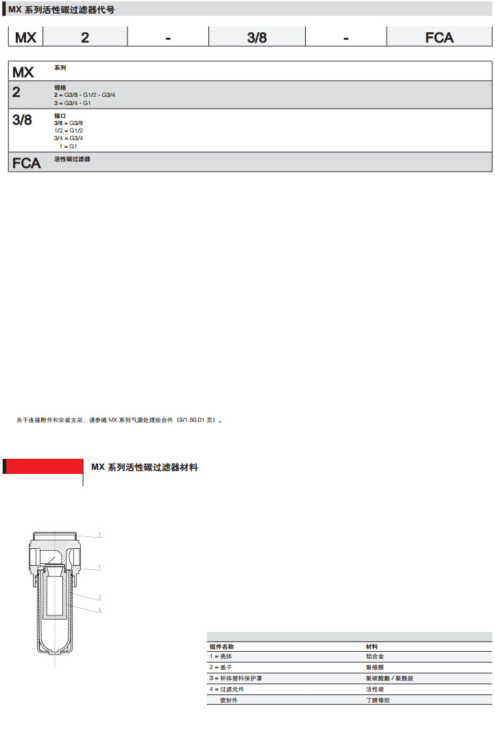 詳細(xì)信息 MX2-3/8-FCA,MX2-1/2-FCA,MX2-3/4-FCA,MX3-3/4-FCA,MX3-1-FCA,camozzi活性碳過濾器