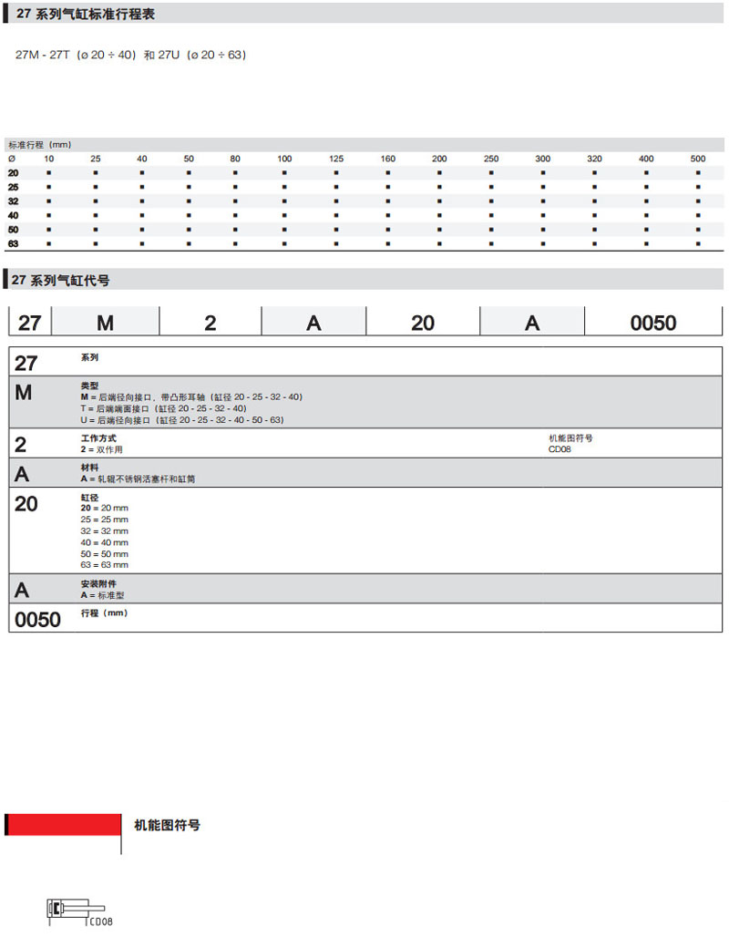 27M2A020A0010,27T2A020A040,27T2A040A050,27U2A040A080,27M2A032A025,camozzi氣缸