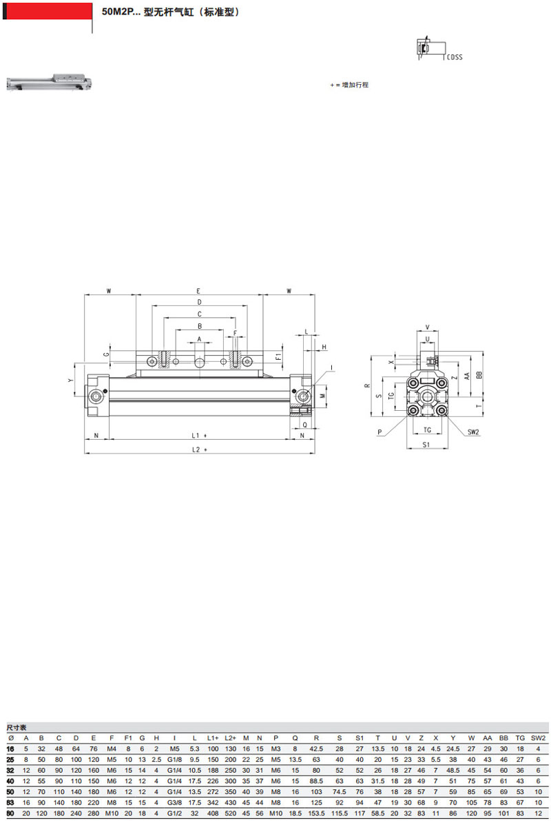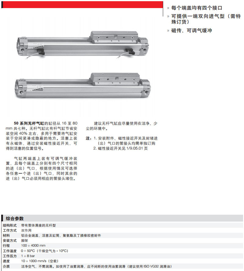 50M2P16A0500,50M2P25A0500,50M2U32A0500,50M2U40A0500,50M2P50A0500,camozzi氣缸