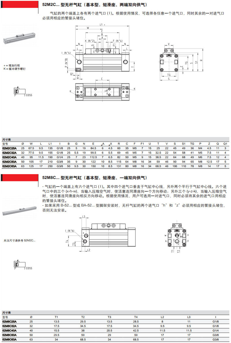 52M2P25A0500,52G2P32A0500,52R2C40A0500,52G8C50A0500,52M8C25A0500,camozzi氣缸