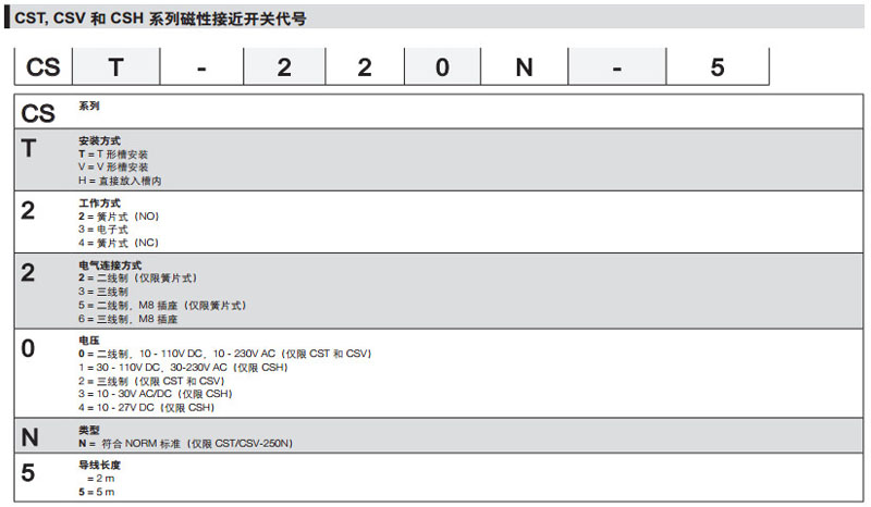 CST-220N-5,CST-331N-5,CSV-232N-5,CSV-423N-5,CSH-420N-5,CSH-353N-5,camozzi磁性接近開關(guān)