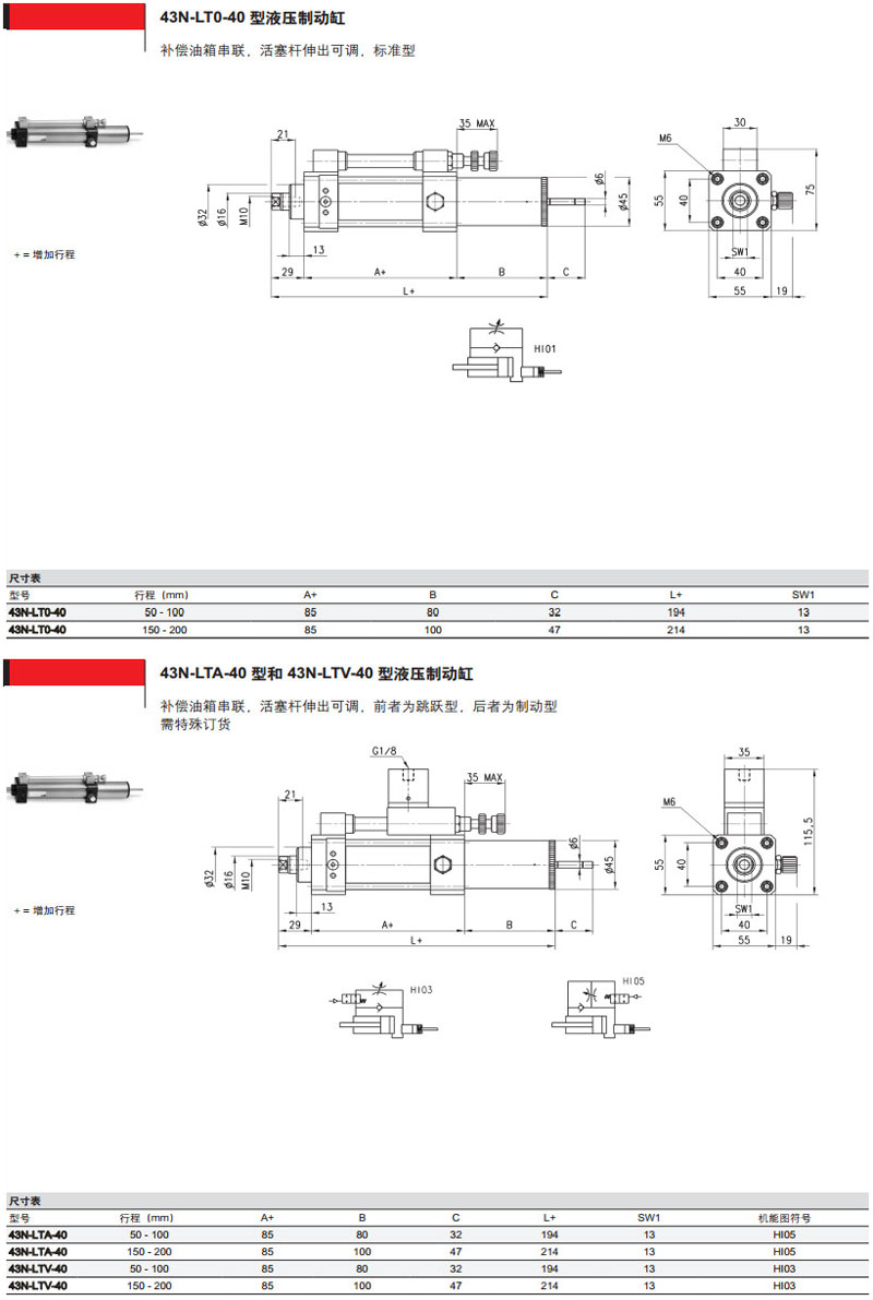43N-LSA-40-200,43S-LTB-40-200,43N-PSV-40-200,43S-PT0-40-200,camozzi液壓制動缸