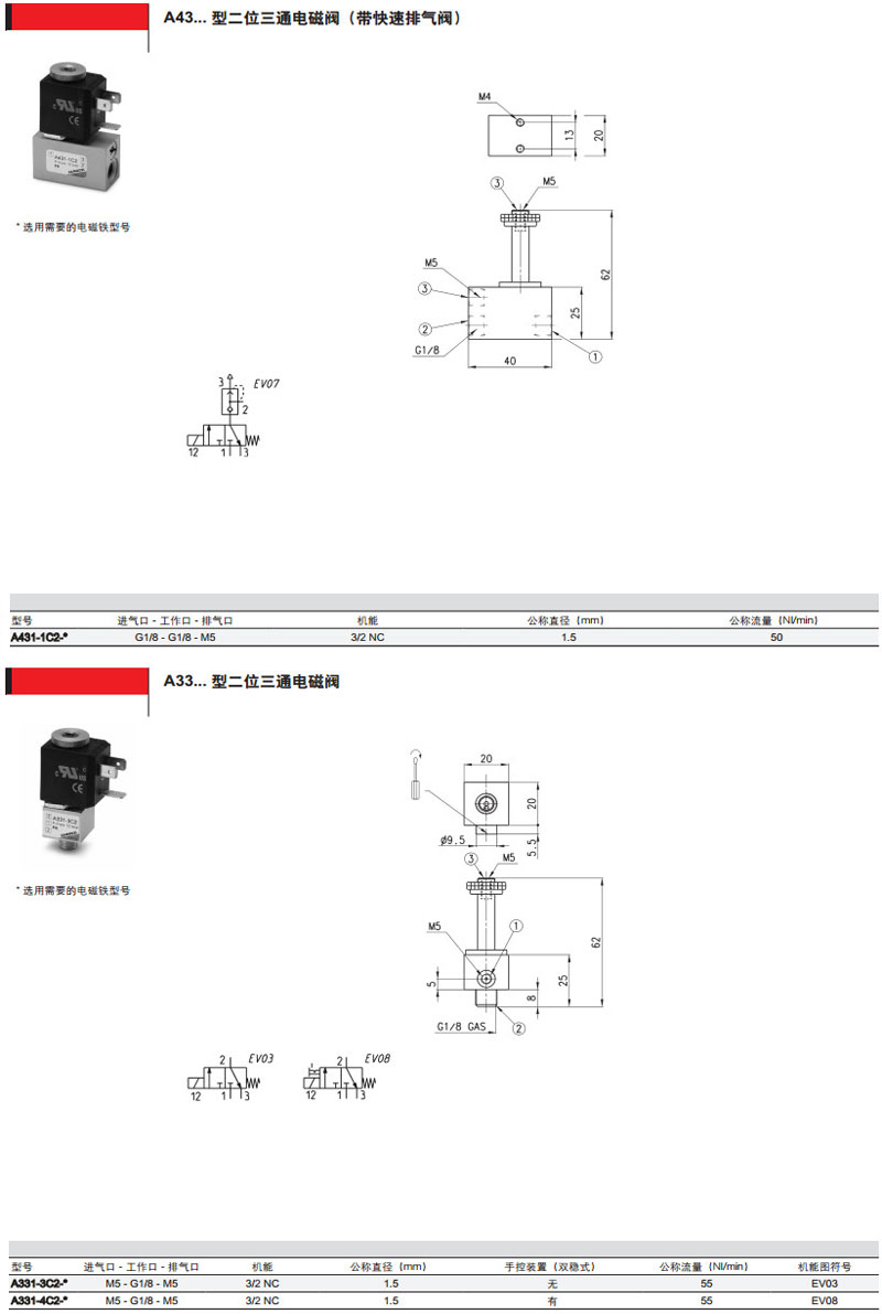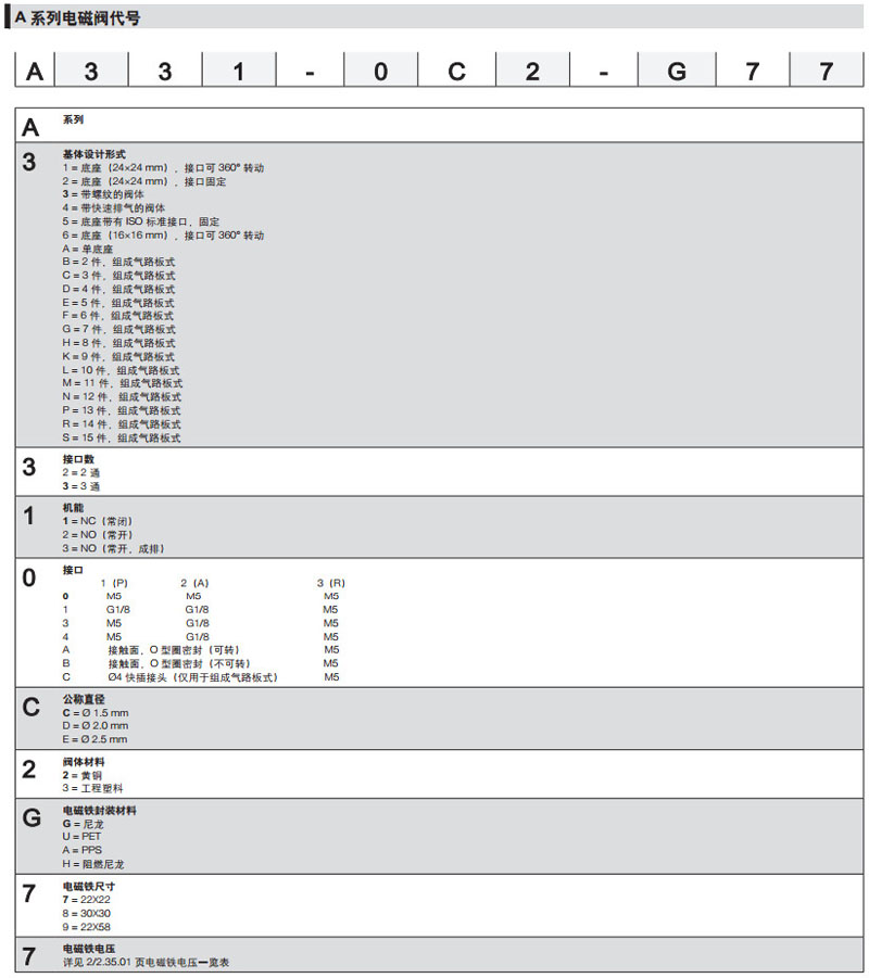 A121-0C2-G77,A221-0C2-G87,A322-0C3-G97,A333-0E3-G97,A131-0E3-G97,camozzi直動式電磁閥