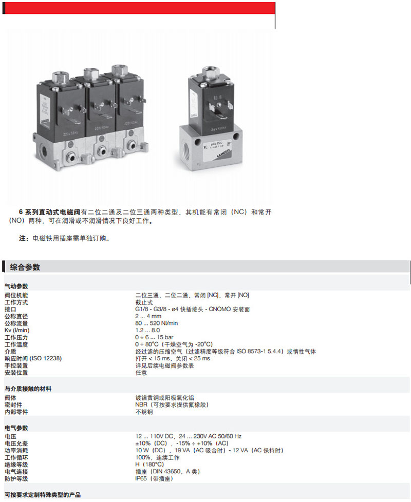 600M-150-A6B,603M-450-A6B,608M-457-A6B,60CM-111-A6B,613M-114-A6B,camozzi直動式電磁閥