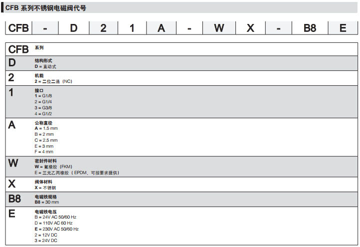 CFB-D21A-WX-B8B,CFB-D22B-WX-B8D,CFB-D23C-WX-B8E,CFB-D24E-EX-B82,camozzi不銹鋼電磁閥